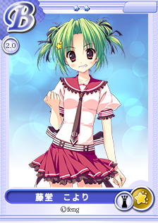 星野 歩 大橋歩夕 ほか ©feng・山比古町観光協会 ⑫・大吾の幻想・こより ⑬・大吾の夢想・円佳 ⑭・大吾の暴走・歩 声優 日々野蒔・ (中津川 初) 青葉りんご・ (日向 伊吹) 鈴木らん・ (藤堂 つむぎ) 桃井いちご・ (藤堂 こより) 森谷実園・ (酒井 陽菜) いすずあすか・ (神本 円佳) 柚木かなめ・ (万 千歌)Koyori Toudou (藤堂 こより, Tōdō Koyori?) is a firstyear student and the vivacious younger sister of Tsumugi, second oldest to Kasane An animated, headstrong, tenacious and often loud girl, Koyori, much like Ibuki, does not welcome Kazuma with open arms at the start of their introduction, though after cushioning her fall from a tree she has a change of heart In spite of her almost